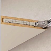 Unique Italian designed and manufactured concealed shelf fittings for 'floating' shelf