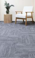 Stain resistant textured tile with discontinuous lines. Made from 100% Solution Dyed Nylon.