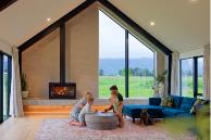 Escea TFS1000 Wood Fireplace features direct vent technology, Sleek aesthetic, & a large firebox.